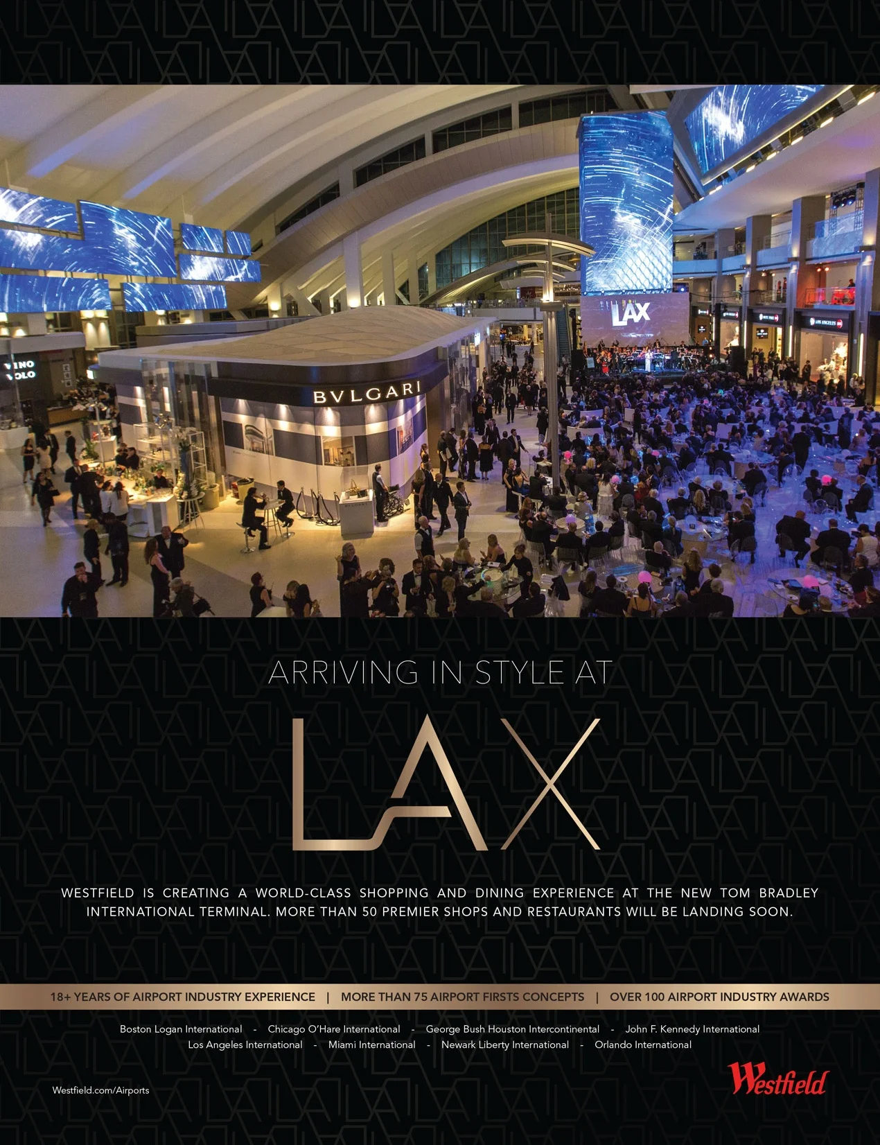 This black-tie grand-opening event and supporting campaign represented a $1.9 Billion dollar development investment for Westfield and was seen as the “crown jewel” of the $4.11 Billion dollar LAX capital improvements project.